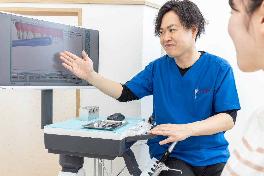 歯科医院から一方的に治療をご提供するのではなく、患者様とのコミュニケーションを大切にし、お口やお身体のこと生活背景まで丁寧にお伺いした上で、最善の治療方法をご提案いたします。
