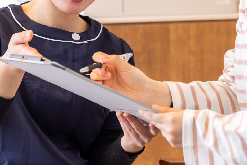 受付でスタッフがお渡しする問診票へのご記入をお願いします。