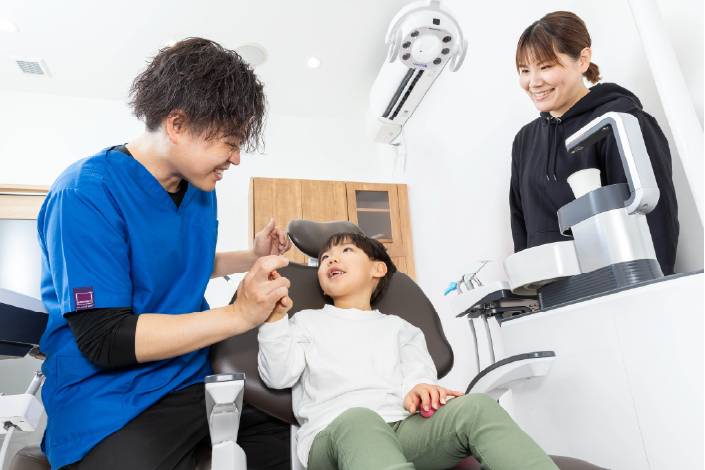 お子様が少しずつ歯医者に慣れていけるように、お子様の成長に合わせたサポートを行っています。虫歯にならないためのお口のケアや、歯並びのお悩みなど何でもお気軽にご相談ください。
