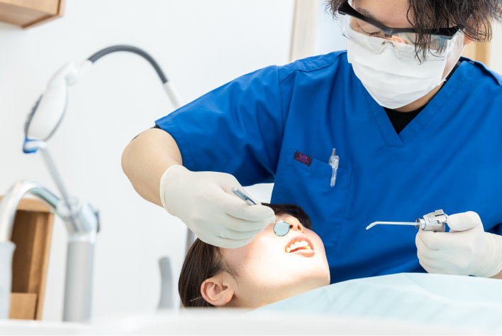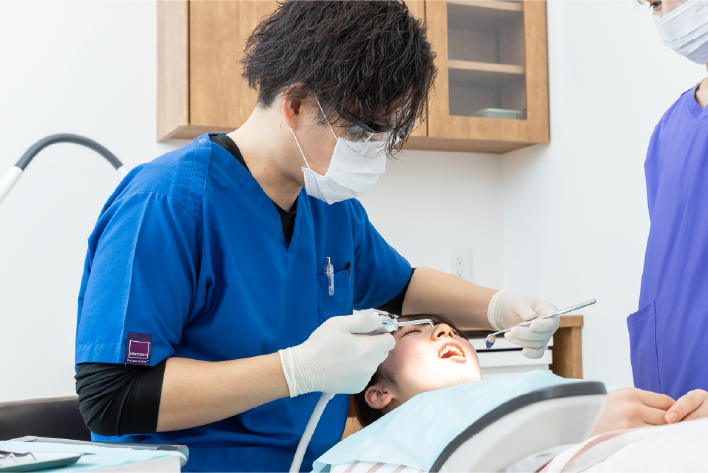 歯に付着した汚れを専用の器具を用いてクリーニングしていきます。歯面をピカピカに磨いて、歯垢や歯石の沈着を予防するだけでなく、「綺麗になって気持ちいい」と思っていただけるケアをご提供します。