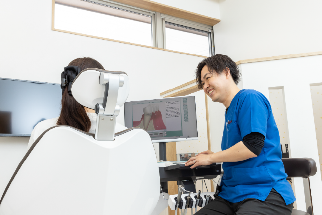 お口のことはもちろん、身体のことや、食生活、生活習慣について患者様が今気になっていることについてお話をお伺いします。不安な気持ちを解消していただけるように、ひとつひとつのお悩みに丁寧にお応えいたします。