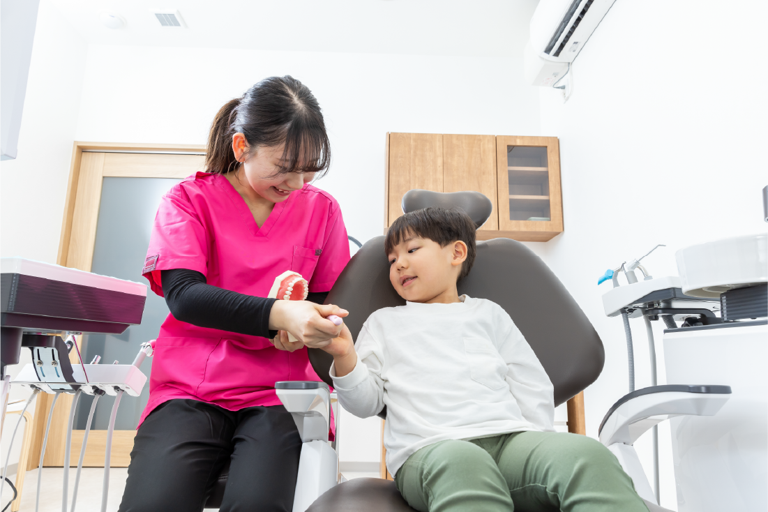 お子様が大人になってからも健康で笑顔に過ごすことができるように、将来の歯並びや全身の健康まで考えた診療をご提案します。豊橋市西幸町の歯医者 ひろた歯科おとなこどもクリニックでは、少しずつ歯医者に慣れていけるように、お子様の成長に合わせたサポートを行っています。