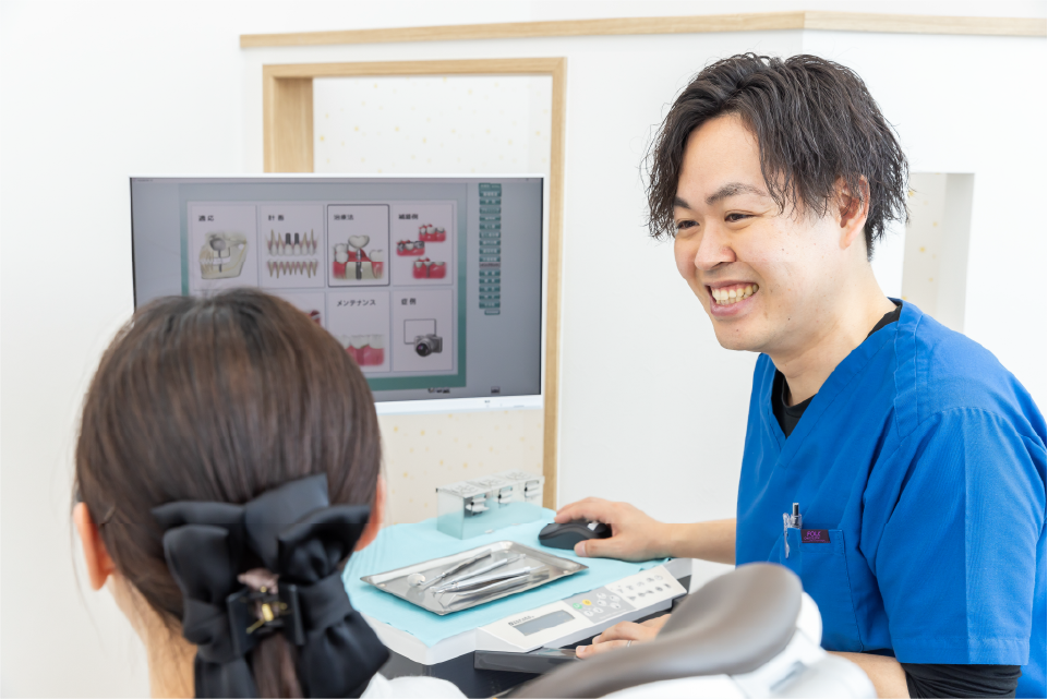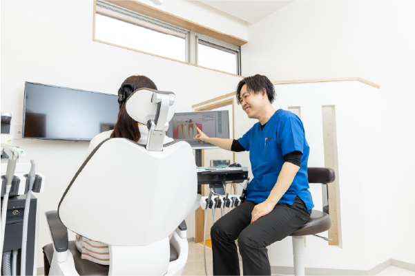 歯科医院から一方的に治療をご提供するのではなく、患者様とのコミュニケーションを大切にし、お口やお身体のこと生活背景まで丁寧にお伺いした上で、最善の治療方法をご提案いたします。