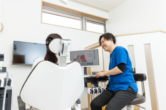 歯周病は痛みなどの自覚症状がなくわかりにくいため、正しい知識をわかりやすくお伝えすることを心がけています。歯周病から歯を守るために、まずはお口の状態を知ることからはじめましょう。