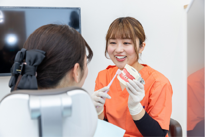 お子様が少しずつ歯医者に慣れていけるように、お子様の成長に合わせたサポートを行っています。虫歯にならないためのお口のケアや、歯並びのお悩みなど何でもお気軽にご相談ください。