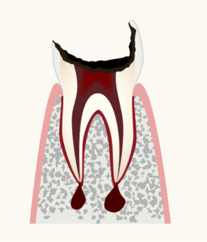 膿が出て口臭がするようになります。神経が死んでしまうと痛みはなくなりますが、放置すると細菌が顎の骨に侵入し、全身に広がってしまうリスクがあります。