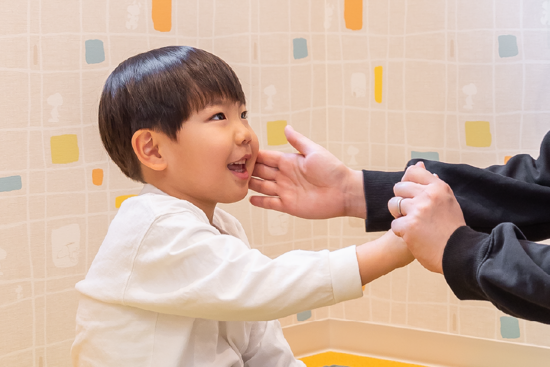 お子様ひとりひとりの好きなことや関心に合わせて、歯科に興味を持ってもらえるようなコミュニケーションを大切にしています。歯や治療について好きなことと関連付けてお伝えしたり、治療に使う器具を実際に触ってもらうなど、少しずつ歯科医院の雰囲気に慣れてもらうことからスタートします。お子様に楽しみながら通っていただけるようにさまざまな工夫を行っています。