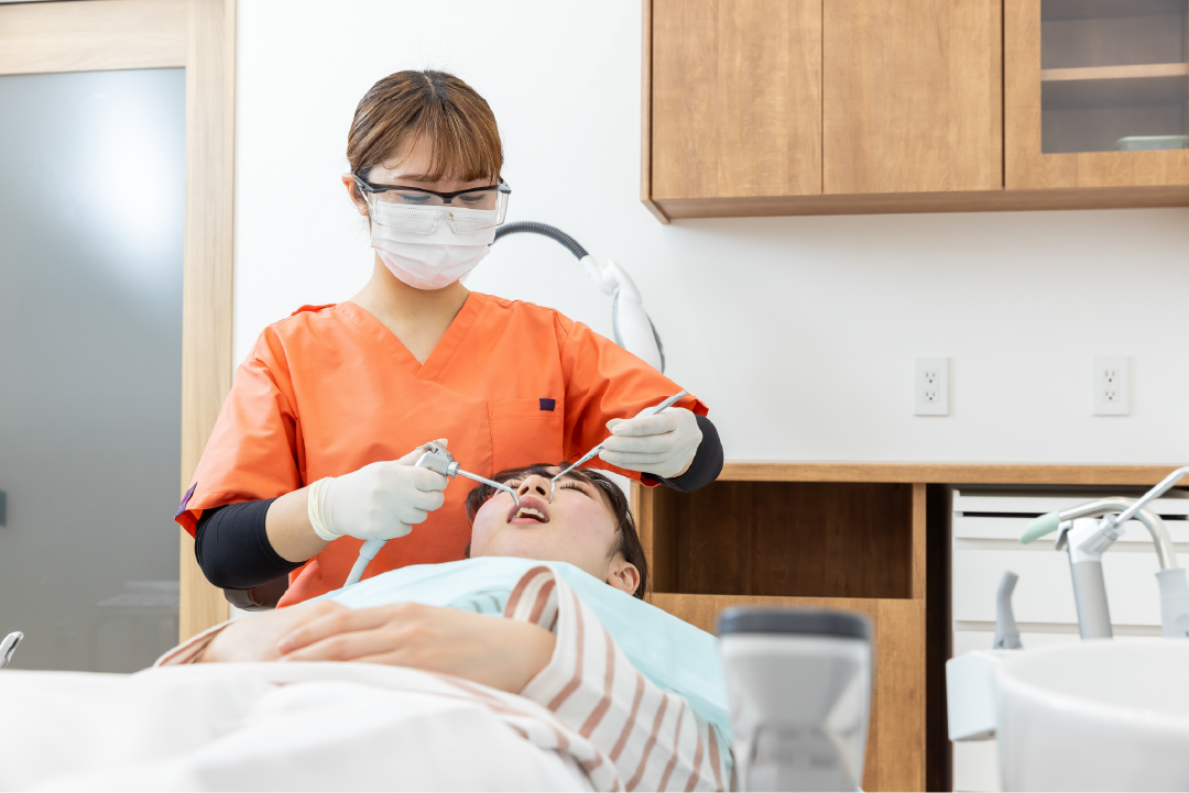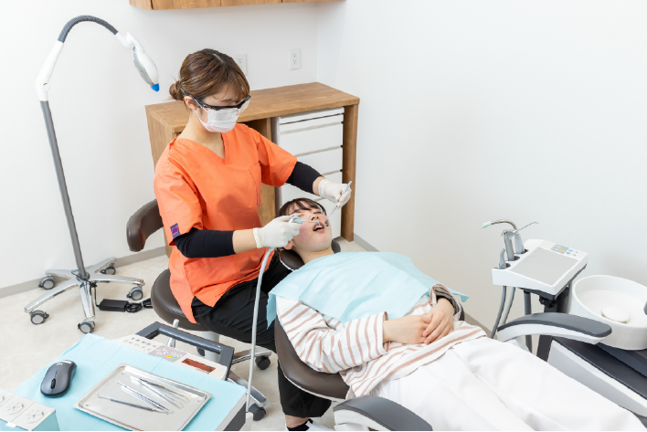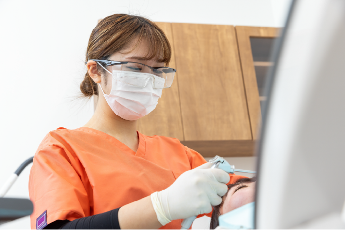 歯に付着した汚れを専用の器具を用いてクリーニングしていきます。歯面をピカピカに磨いて、歯垢や歯石の沈着を予防するだけでなく、「綺麗になって気持ちいい」と思っていただけるケアをご提供します。